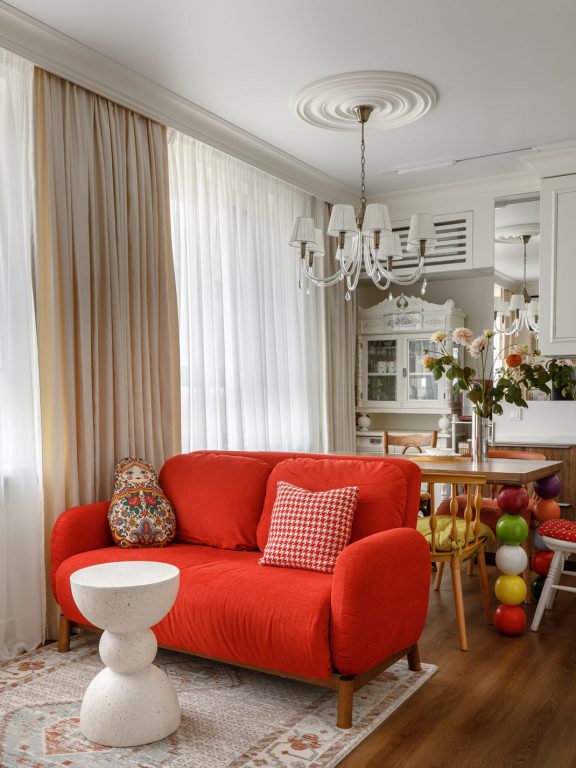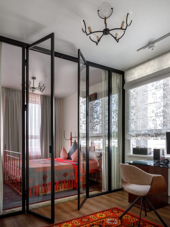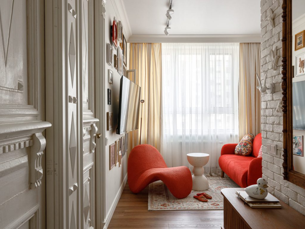 Однокомнатная квартира 65 м² с уникальным дизайном, превращённая в двухкомнатную для молодой семьи